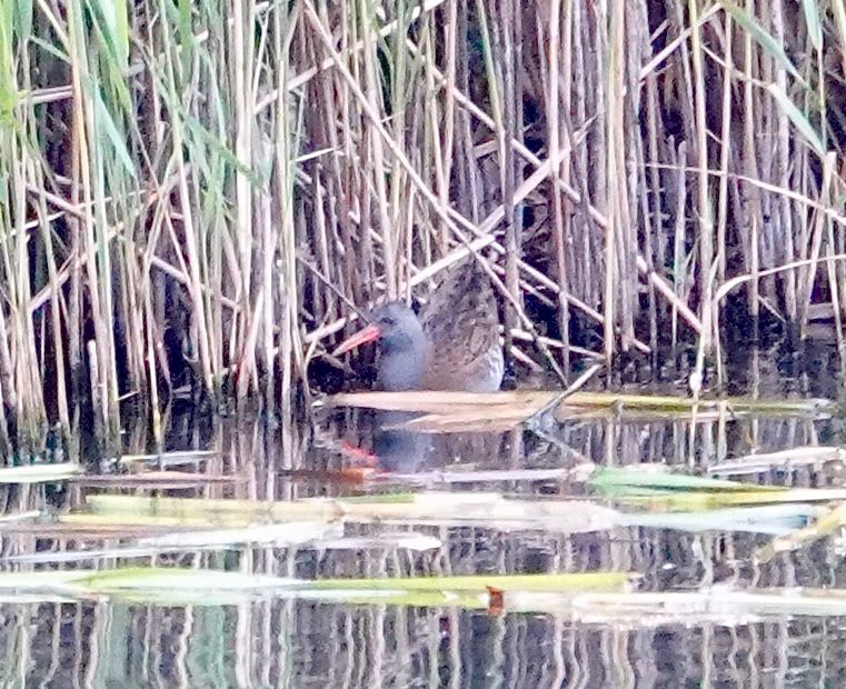 Lavell’s Lake – Water Rail from the Teal hide on the opposite bank right of the Sand Martin wall, Kingfisher hovering around (Keith Seymour)